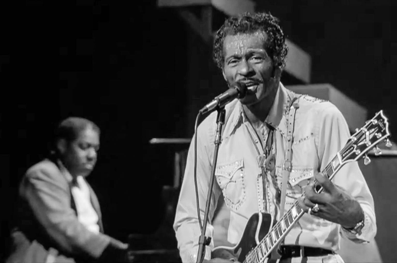 Chuck Berry received a brief taste of celebrity status during his High School talent show. His friend rocked on the guitar while Berry himself covered the vocals, and together they delivered a performance that the student body enjoyed immensely.