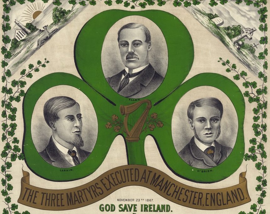 A song which honors the lives of "The Manchester Martyrs"—three Irishmen who were executed following an attack on a police van in Manchester, wherein a policeman was accidentally shot. This incident inspired The Wolfe Tones to write "God Save Ireland," a tribute to the three men which later became an unofficial national anthem.